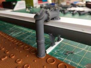 45 degree Segmented Elbow for Walthers BF Tubing. Manufactured with sockets for 1/16″ rare Earth magnets, so that joining tubing can be magnetized to the joint, rather than glued. This makes the tubing removable for cleaning or moving the models. $5.00ea.