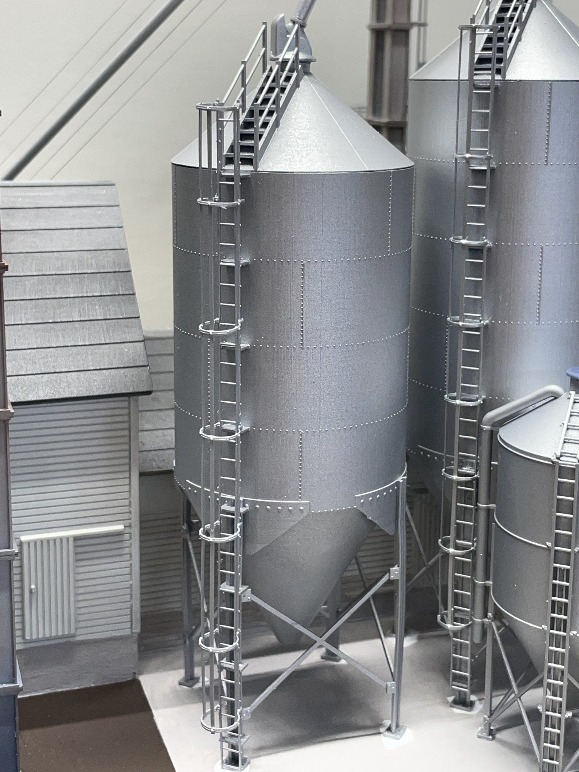 A 15′ Hopper Bottom Feed bin used at feed mills and farms all across the country. Our bolted design is typical of one design, with the prototype for ours being in Holcomb Illinois. Suitable for any era.