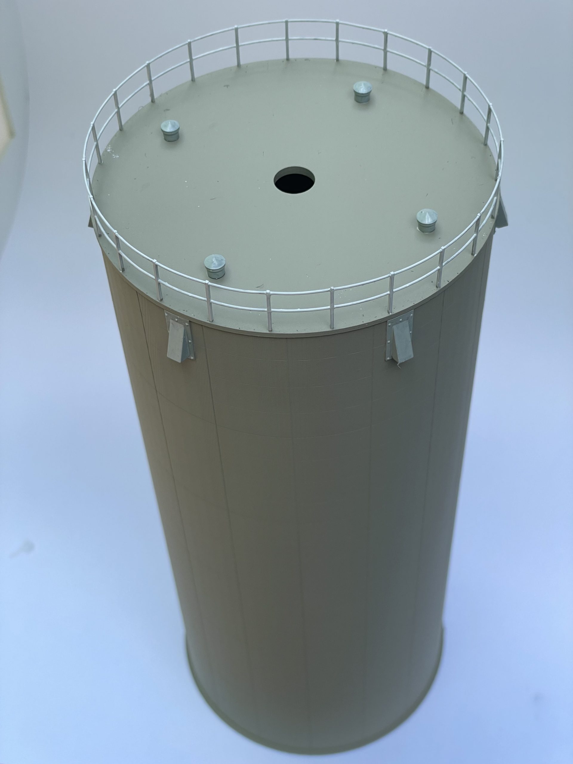 Our 30′ concrete slipform silo is common all across the U.S. from the early 1970’s through modern times. Coming in at 68′ tall, our prototype is in Murrayville, IL. One piece design(in N and HO) means you won’t have unsightly or uneven seams between rings, like the one W sells. All measurements take from the actual silo in person. Great to use with our Low Drag Conveyor For Multiple Bins/Silos.
