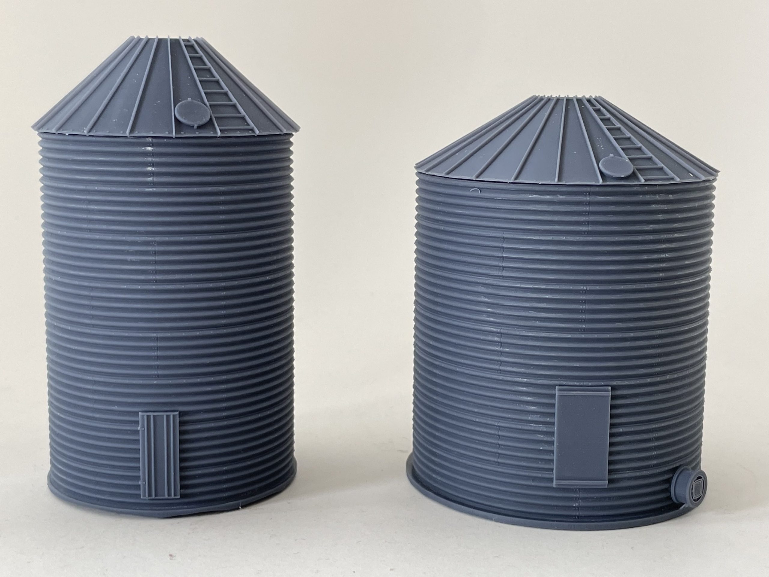 Elevator kit comes with everything but the buildings in the photos. Two 4400 bushel bins, one 5800 bushel bin, 2 C&L 16.000 bushel bins, Bucket elevator, two packages of extension legs, a Brock flat back 6 way distributor, two packages of truss kits for Evergreen 1/8″ tubing, two packages of bin adapters, two car loading chutes, Tichy Cages Ladders