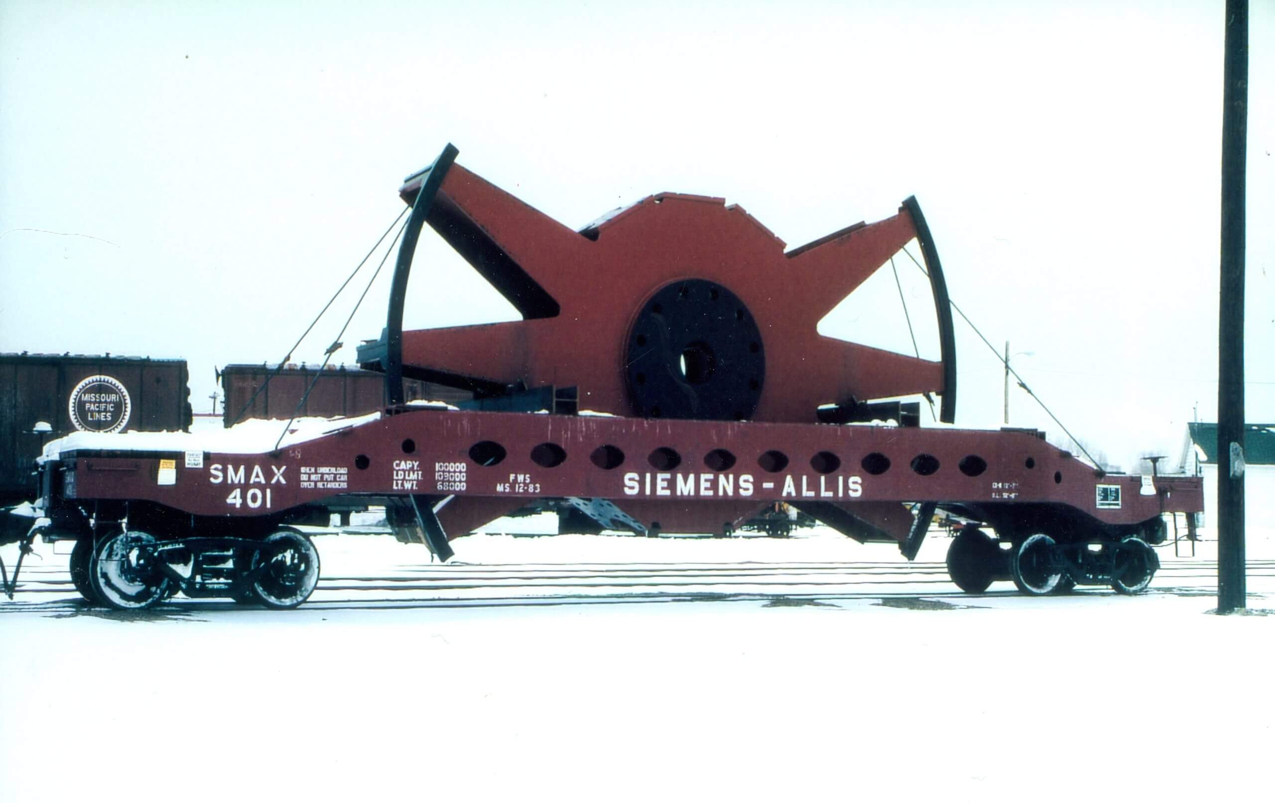 This unique load is suitable for the Allis-Chalmers 52’6″ Well Car. Hydroelectric Rotors are part of the power generation assembly in a Hydroelectric Dam. Manufactured by Allis-Chalmers, and later Siemens-Allis from the 1960’s through the 1990’s. (I am unfamiliar if Voith also manufactured these after the merger).