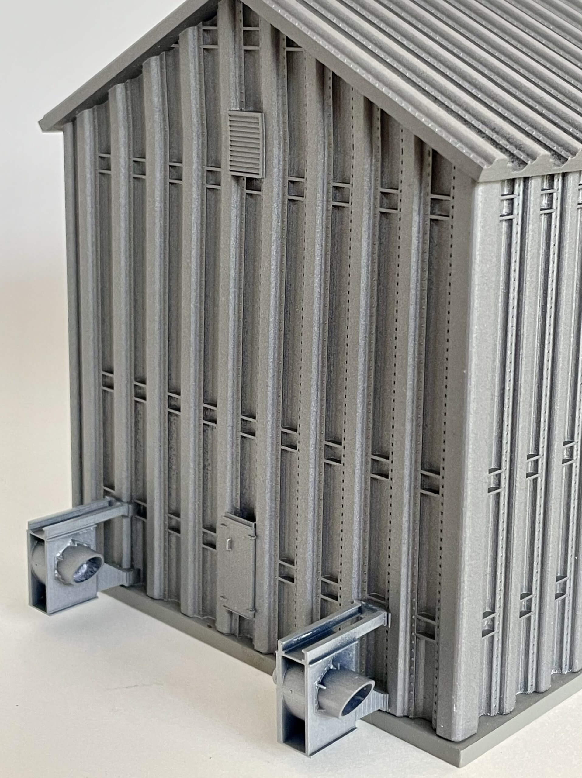 I recommend Humbrol Spray Bare Aluminum with Dull Coat over that for the color. These builds always seem to be darker galvanizing that standard bins. I’m sure some observers will have seen many shades, but I think this paint scheme matches closely. Then weather as you see fit.