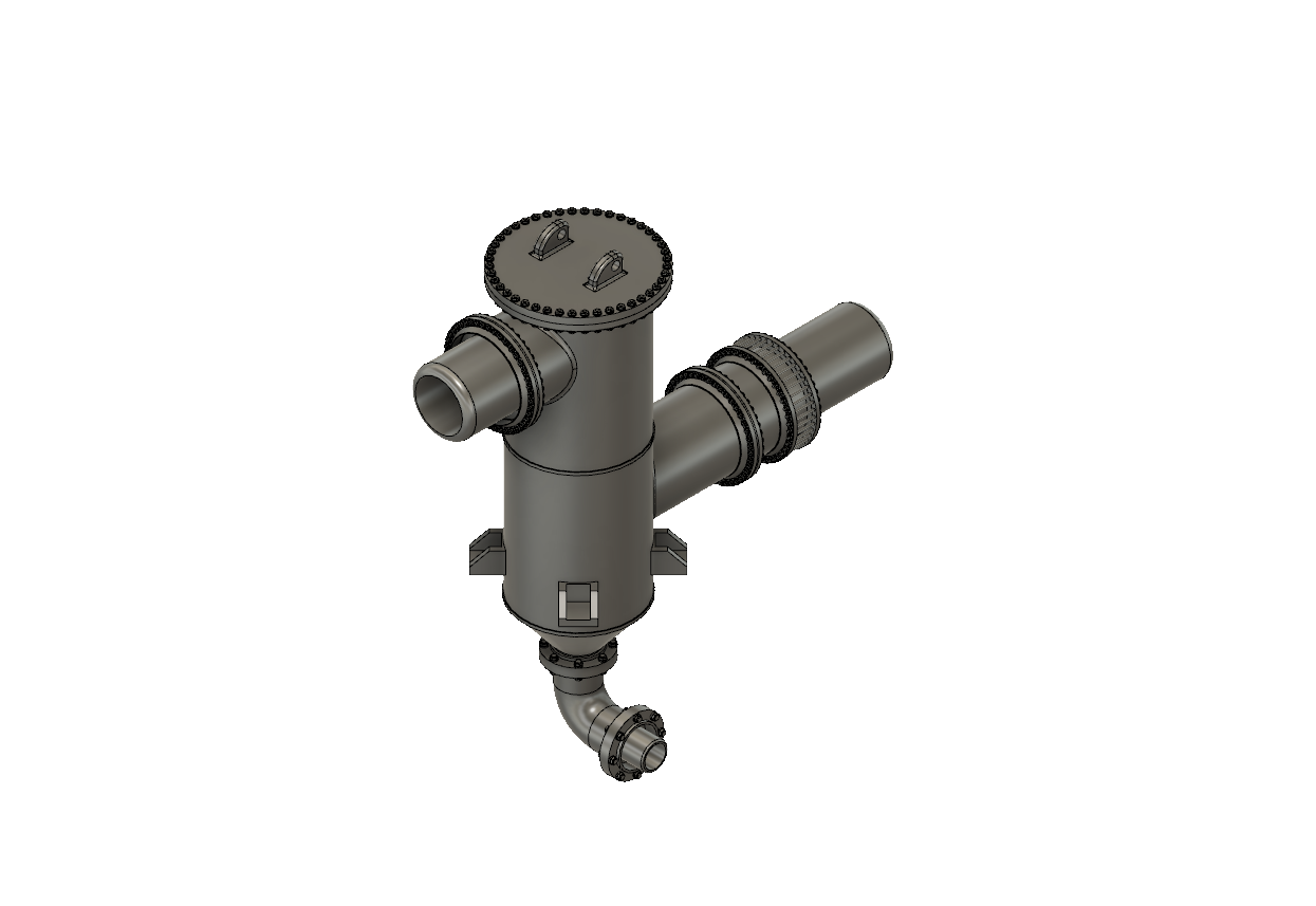 This device feeds from the collecting main off-take, and has a 1/2” pipe connection for the Primary Cooler intake, and 1/4” pipe connection for the Ammonia Liquor Decanter above. Refer to photos on HAER of the Thomas version.