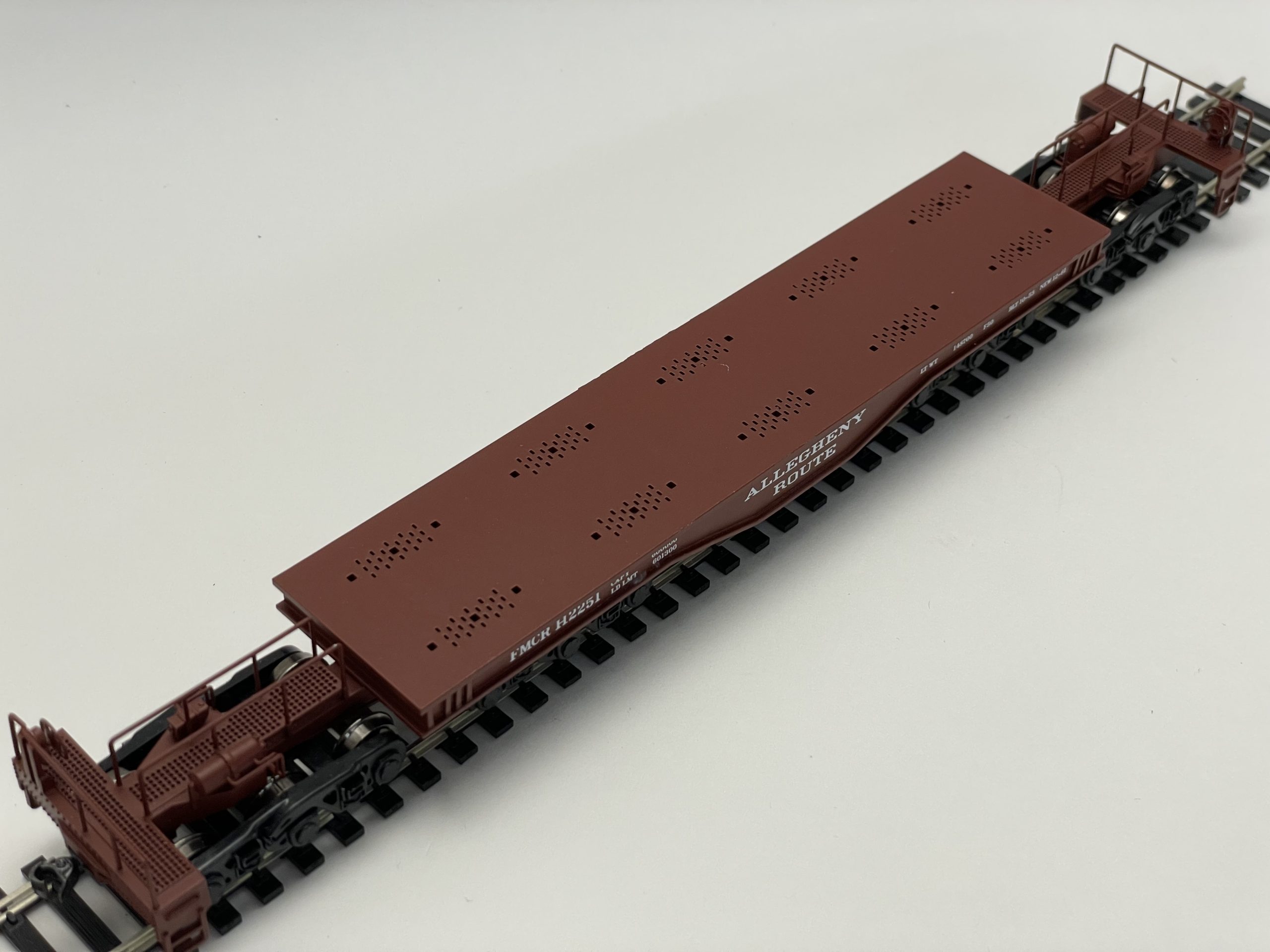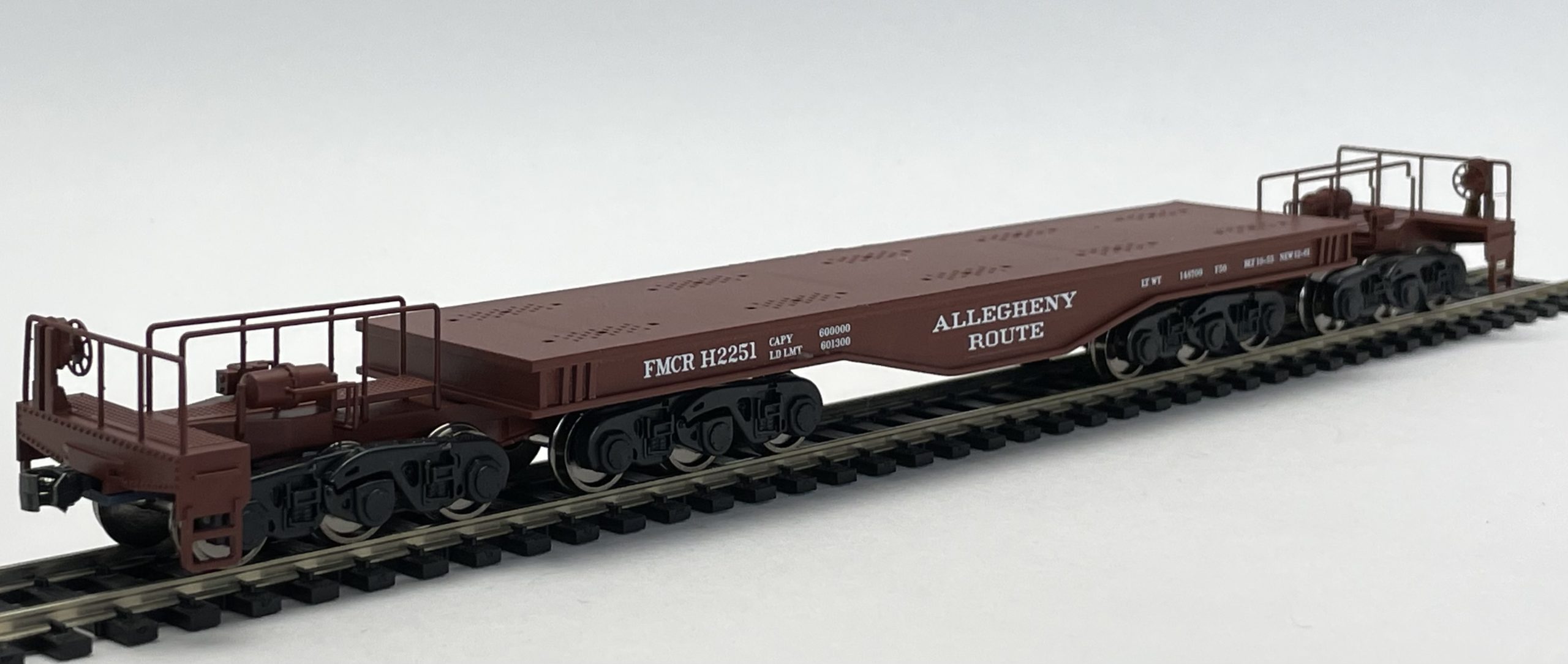 This Allegheny Route Prototype 300 Ton welded deck car comes complete with car body, span bolsters, Kadee #5 couplers, 4x Buckeye Trucks, Hardware and decals. This is a craftsman kit, and a freelance model. If modeling for the Allegheny Route, use Boxcar Red paint. Can be used for other freelance roads when using data from decal sheet.