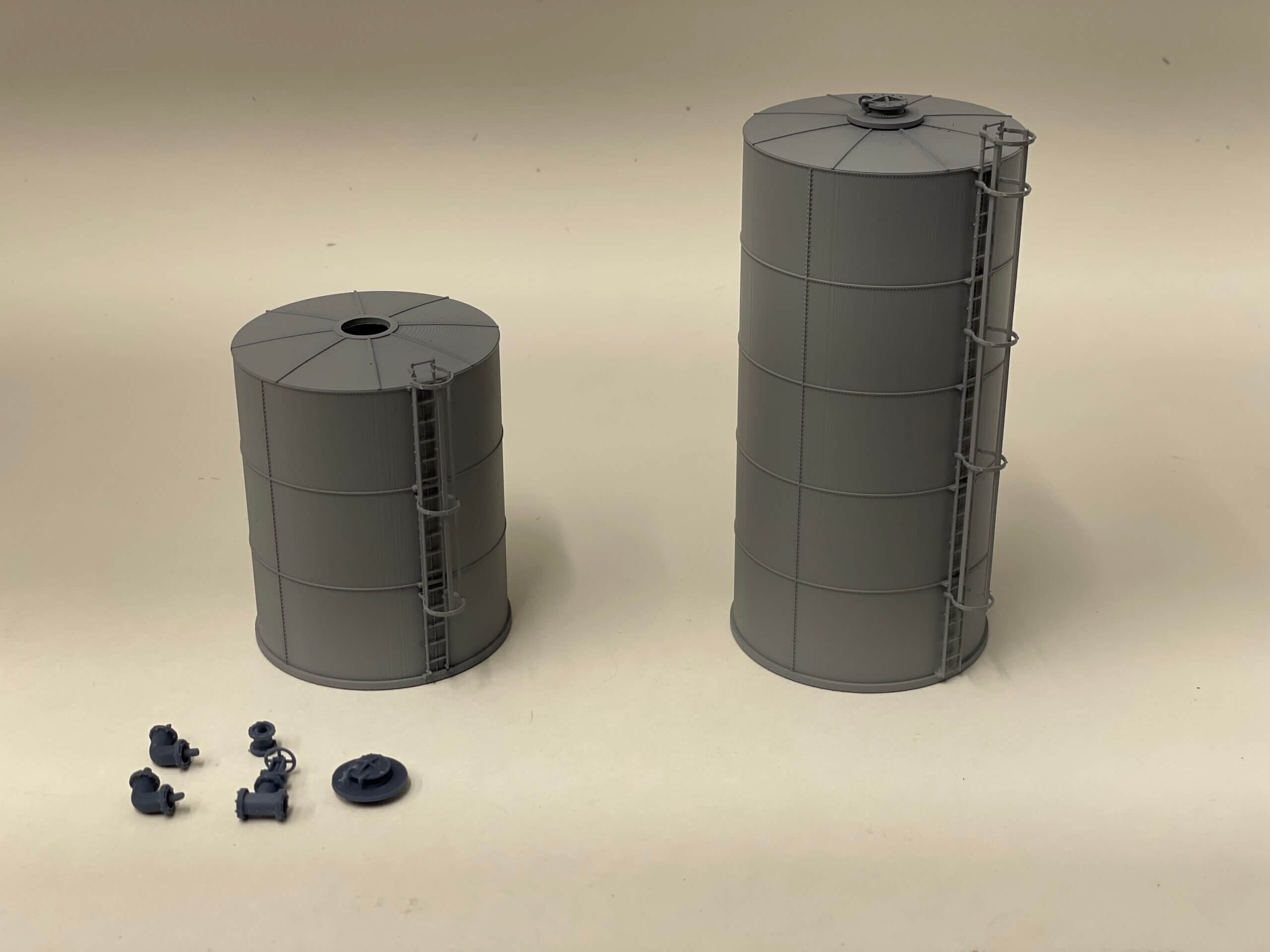 Model includes tank body, Tichy Caged Ladder, 1x 3/32″ gate valve, 2x 3/32″ 90° elbow, 1x 3/32″ Tank Flange, 1x Tank Access Hatch