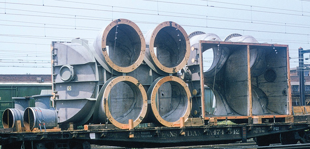 This large heat exchanger manifold is a massive high and wide load that’s sure to turn heads. Use any 53′ or longer flatcar. Reference photo below for loading and tie downs.