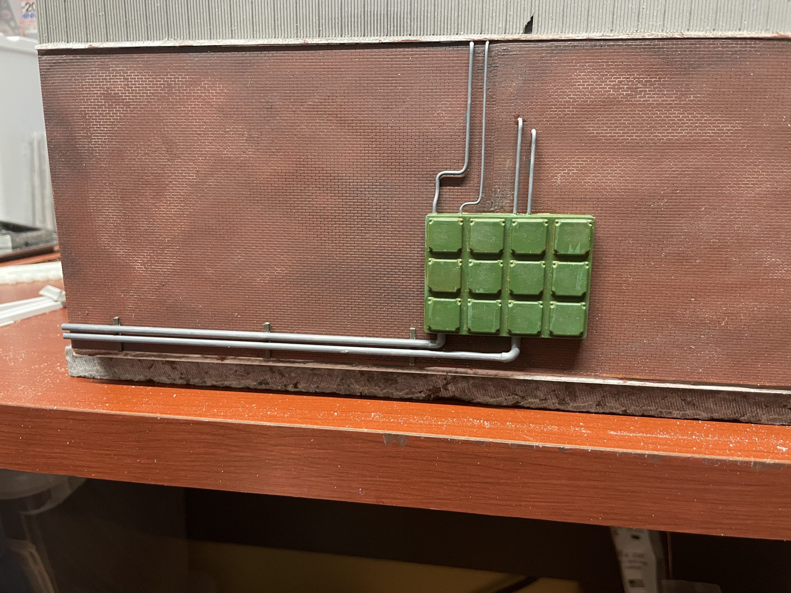 This Heavy Electrical Distribution Cabinet is great for any large industrial application where big power comes in. 4 large ports on the bottom to feed in the main power, and 6 ports on top handle all your electrical needs. And if the top ports aren’t big enough, simply drill them out with a pin vise to your desired size. Available in N, HO, and S.
