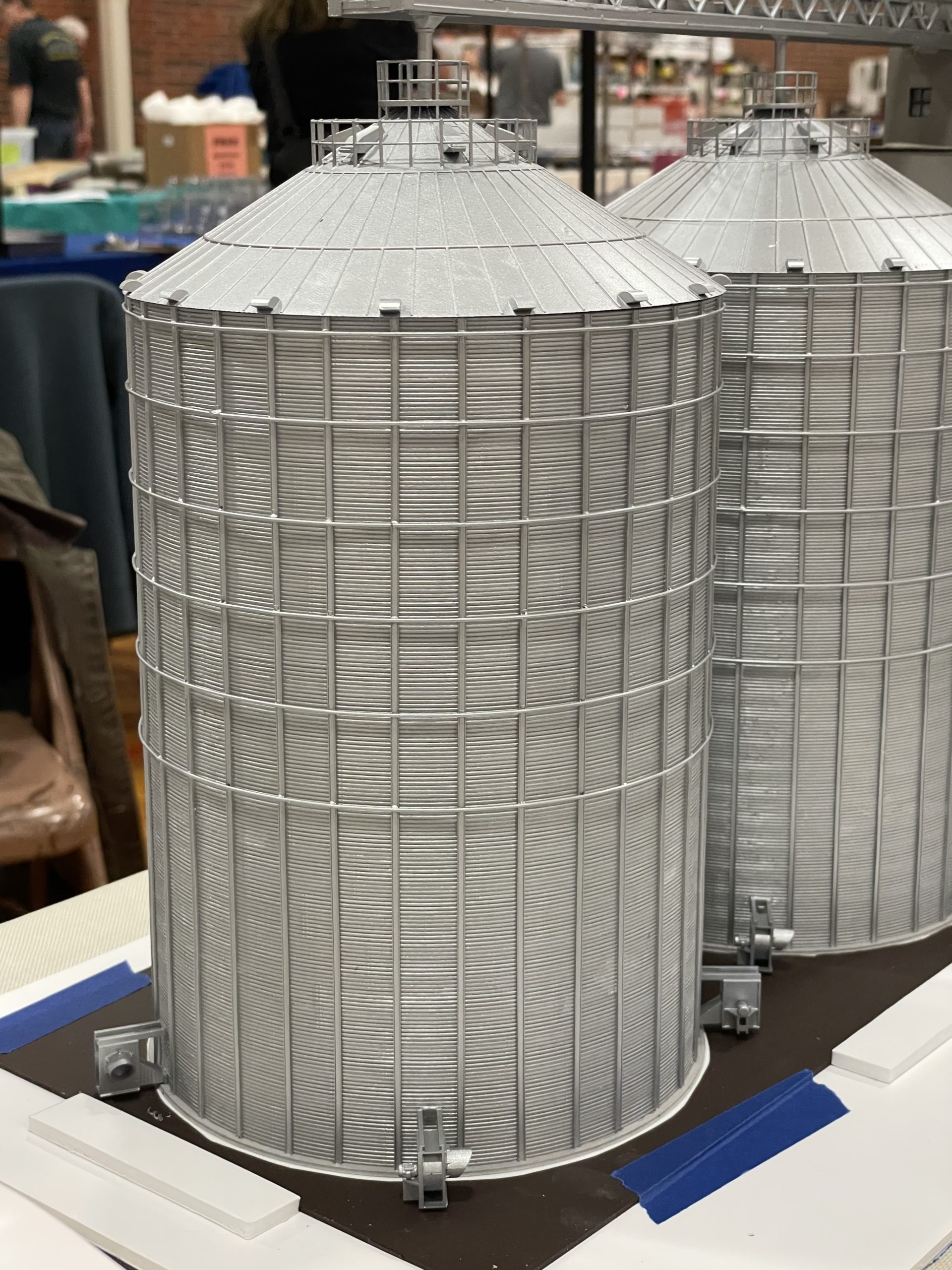 This 100,000 bushel, 48′ diameter bin is just what your modern elevator needs. These bins have been in production since the late 1970’s. So they’re right at home on your layout that fits that era to modern. The bin is one piece, so no assembling multiple parts and then multiple rings. Our new top is modeled after the Sioux Steel roofs, vents and power vents that are seen on bins of this size all over the country.