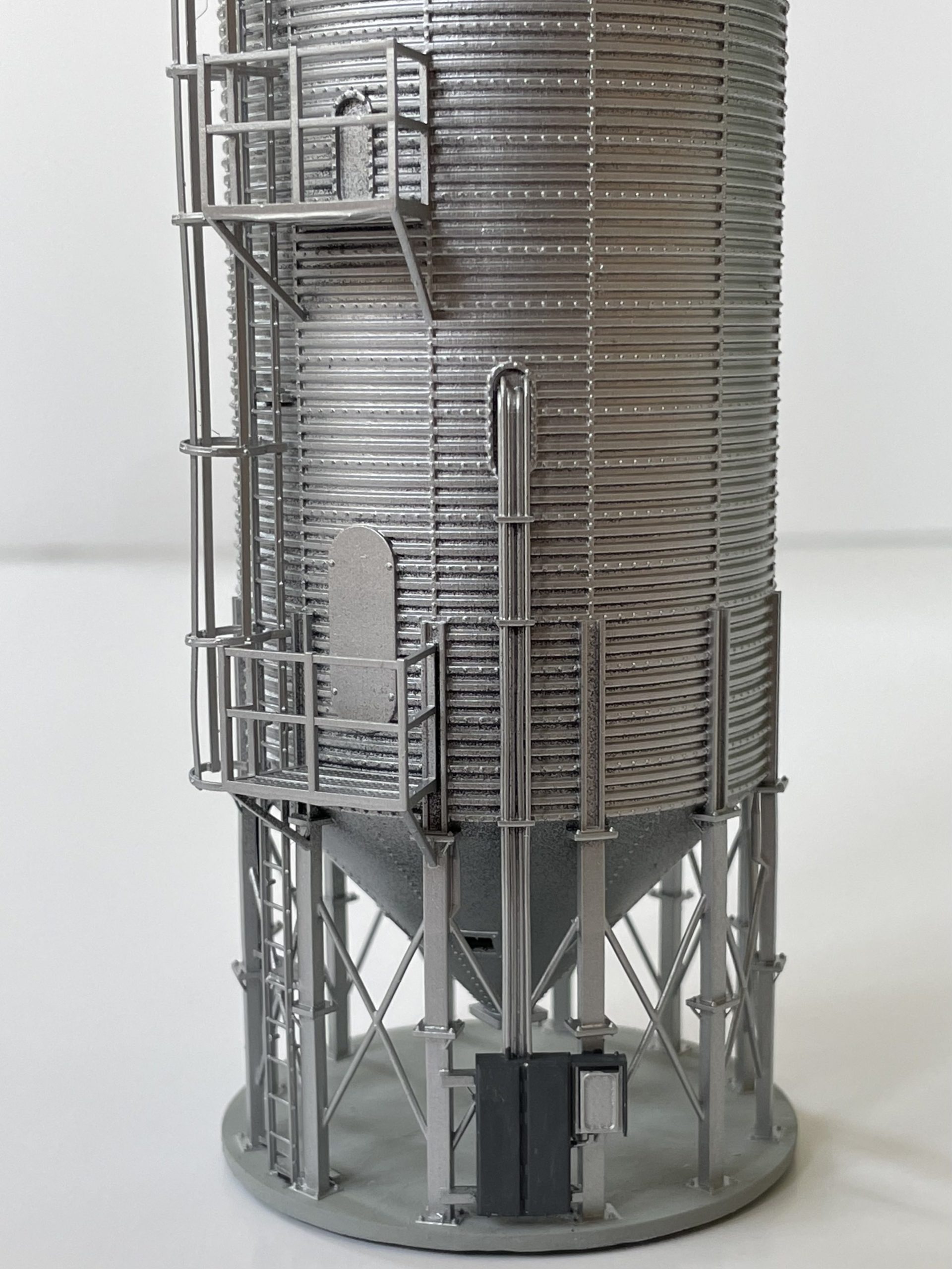 Our Modern Grain Dryer is typical of those seen all over the U.S. from the 1980’s until today. Still manufactured and produced by several companies, ours is modeled with measurements directly from the prototype GSI Dryer in Leland Illinois. They dryer is 14′ in diameter, and 83′ tall. Use with your own ground conveyor, or purchase ours (coming in September 2023). Use with our Grain Bin Adapter Hatch to feed from your wet leg elevator.