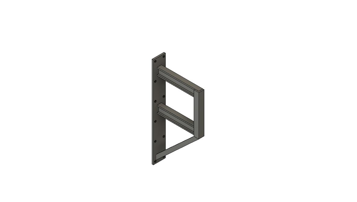 This narrow pipe rack is ideal for one pipe, bundles of electrical cables, or several smaller diameter pipes. The cross beams are 5/8 wide, and the distance between the lower and upper cross beams is 13/32. Wall flange is 1 1/2″ tall.