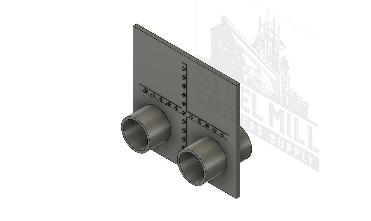 Can be used with Walthers Modulars wall sections, or as a scratch building item. Pipe breech consists of steel plate, with 2x 3/8 pipes, sized identical to Evergreen 232. Use with 3/8 Pipe Couplers, 3/8 Cast Elbows, 3/8’s valves, etc. Sold ea. Multiscale.